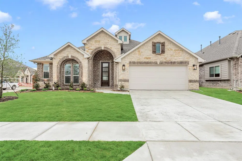 Gorgeous Hawthorne II is a real head-turner with its stately brick & stone exterior, covered brick porch, and surrounded by soft lush landscaping. When you enter follow the opulent faux wood laminate flooring that leads to the widespread Family Room flooded with natural light. Additionally, the Deluxe Kitchen and Brkfst Nook are connected to your open-concept Family Room, fabulous for entertaining! Other kitchen elements include built-in SS appliances, quartz countertops, custom stained cabinets with matte black pulls, and a walk-in pantry. You will also find the Study right off the elegant foyer for any secluded work-from-home needs. Primary Suite includes a widespread layout and an Enlarged Shower in the bath, and 2 separate walk-in closets. There are 2 additional bdrms and 1 full bath downstairs; 1 more bdrm and full bath upstairs along with a lofty Game Room. Covered Patio overlooks a huge, fenced backyard. Come by today to tour the community & see how you can make this home yours!