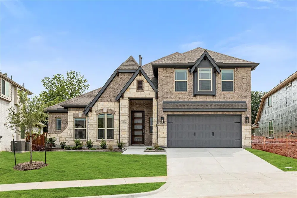 Finished New Construction! Bloomfield's Carolina IV plan is quite the head turner with a Brick and Stone exterior featuring a stylish 8' Front Door and an open layout inside that's packed with upgrades - ready for your transformation! With 4 lofty bdrms, 3 downstairs and one on the 2nd floor, as well as 3 full baths. Gourmet Kitchen designed for gatherings with your loved ones featuring an impressive island, beautifully built cabinetry, a grand pantry that will be difficult to fill, dazzling quartz countertops, and built-in SS appliances! You will fall in love with enhancements like Wood Flooring throughout common areas, the cozy Stone-to-Ceiling Fireplace with Gas Logs in the Family room, an Extended Covered Rear Patio, and Glass French Doors at the Study. Game room space & Media Room upstairs, plus a built in Tech Center for work or play. Gutters & blinds included. Make sure to visit us at Emerald Vista to learn more and explore all this community has to offer!