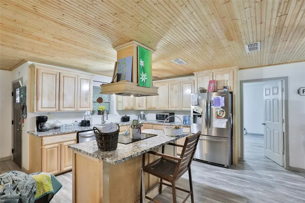 Lovely brick home featuring 3 bedrooms and 2 bathrooms. LVP flooring throughout the home with ceramic wood looking tile in the bathrooms. Fantastic kitchen and main living area with pine wood on the ceiling complimenting the kitchen cabinets so nicely! The kitchen boasts stainless steel appliances, a beautiful hood over the electric range in the island and plenty of storage and counter space! A corner wood burning fireplace is in the open living room. Each bedroom is great sized. Great tile work in both bathrooms. Spacious laundry room with storage. A large sunroom is in the back of the home with access to the back patio. The large covered front porch and large covered back patio is sure to meet your outdoor needs! There is a cattle panel fence in place, this is much more durable & irreplaceable than your wooden fences!