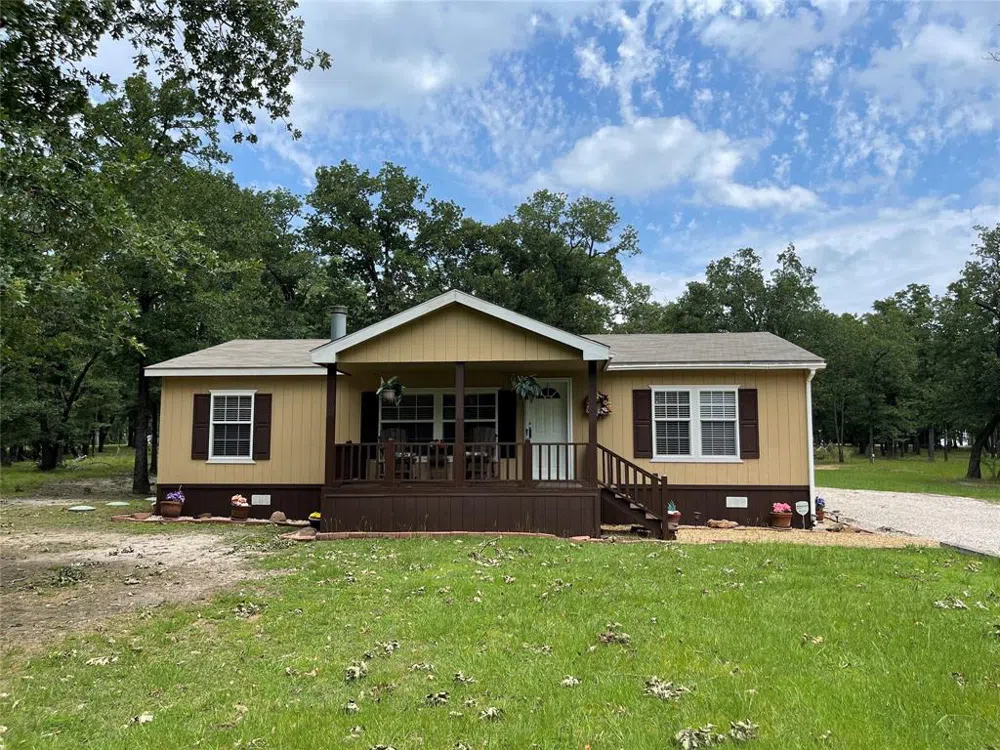 Your new lake get-away at Richland Chambers Lake! You must see this well maintained doublewide manufactured home on a beautifully treed 0.5 acre lot. It offers a spacious covered front deck, fully covered deck across the back side of the home, beautiful appointments in the kitchen, fireplace in the living room, ceiling fans throughout, ensuite bath with two sinks, separate shower and massive garden tub. Refrigerator, range & microwave in kitchen remain. Washer & dryer in laundry room remain and TV in the living room remains! Besides the incredible porches, there's a storage building out back and a fire pit for fun nights around the fire. The private boat ramp & pier for the Cape Estes property owners is just a short distance from the property for quick & convenient access to the lake! This one is truly a move in and start enjoying time at the lake property.