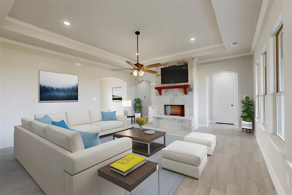 Welcome to this gorgeous oasis just outside the hustle and bustle of the city. Located on 2 acres with amazing country views. As you step into this beautiful new home you'll notice the oversized eat in kitchen and the cozy living room where you can enjoy a nice fire in your wood burning fireplace. This home is located only minutes to Sherman and Bonham. You have access to dining, shopping, and entertainment. Take notice of all of the modern touches that went into the meticulous design of the home. From the lighting in the kitchen, the custom wood on the front door, high ceilings in the common areas and the decorative lighting throughout the home. The primary bathroom includes dual sinks with plenty of storage space as well as a huge walk in shower for relaxation. Beautiful Garden, sod on the front, Gutters, and oversize garage to fit any vehicle. For your peace of mind this house comes with 1,2,10 years StrucSure Warranty.