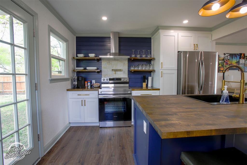 Agent related to owner. New! New! New! Completely remodeled 2 bedroom 1 bath home centrally located with a short drive to ACU, HSU, Hendrick Hospital, and downtown Abilene! NEW roof October 2022! New windows, new hot water heater, new HVAC Feb 2022, new fence! Kitchen features all new stainless steel appliances including refrigerator! Large island with dishwasher and extra storage, pot filler over electric range, floating shelves, and ample cabinets! Electric fireplace in living room brings coziness to this cute home! Separate spacious laundry room with folding table. Privacy wood fence encloses large backyard perfect for entertaining, grilling, or making s'mores!