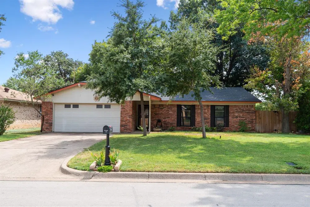 BOM Buyer's financing fell through! Nestled on a large, wooded lot, this 3-2-2 gem is Located near ATT Stadium and the Arlington entertainment district. Step inside and you'll notice the wood-burning corner fireplace, creating a cozy and inviting atmosphere in the heart of the home. Wood-look tile plank floors not only add an air of sophistication but also ensure easy maintenance. The open-concept design seamlessly connects the living area, dining space, and kitchen, making it ideal for both everyday living and entertainment. The kitchen has appliances and granite countertops. The primary bedroom has an attached en-suite bath that is a spa-like oasis. Two additional bedrooms provide for your family's needs, whether you choose to use them as bedrooms, or a home office. The 2nd bathroom serves both guests and residents. One of the features of this home is the covered patio, a perfect extension of your living space. Landscaped, wooded lot. Roof replaced Feb 2023.