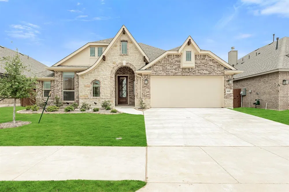 NEW! NEVER LIVED IN. Spacious and open 4 bedroom single-story with a Media Room, Covered Rear Patio, and a gorgeous Gourmet Kitchen! Thoughtful selections add value and elegance to this home like Wood-look Tile floors in common areas and a contemporary Tile Fireplace in the Family Room. The exterior is just as impressive thanks to a unique stone and brick façade with architectural elements, which also continue as you venture inside like a rotunda entry, art nooks, arched doorways and cutouts, and more. 3 roomy secondary bedrooms are located on the opposite side of the home from the massive Primary Suite. Easily use as flex spaces to fit your stage of life, whether you require a nursery, gym, or a home office. In the kitchen, find dazzling exotic granite countertops and built-in SS appliances - even a gas cooktop with a wood vent hood! Plenty of storage can be found throughout, and every Bloomfield home comes with energy-efficient features. Come see Bloomfield at Hulen Trails to tour.