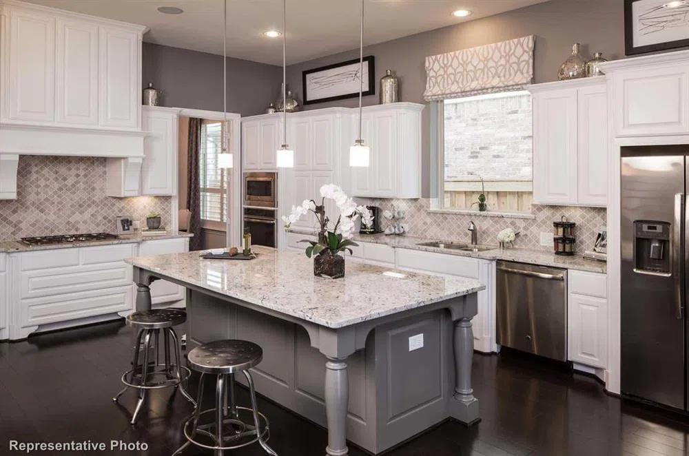 MLS# 20454555 - Built by Highland Homes - Ready Now! ~ Corner Oversized Lot! This home lives incredibly! 2 bedrooms and a media room down! Large Study at entry with a beautiful curved staircase. Vaulted ceilings, 8' doors, open and spacious. Upgrade Farm Kitchen package with double ovens and Cafe' appliances. Planning desk with wine rack at breakfast nook. Wood flooring through out main areas and primary bedroom!!!!