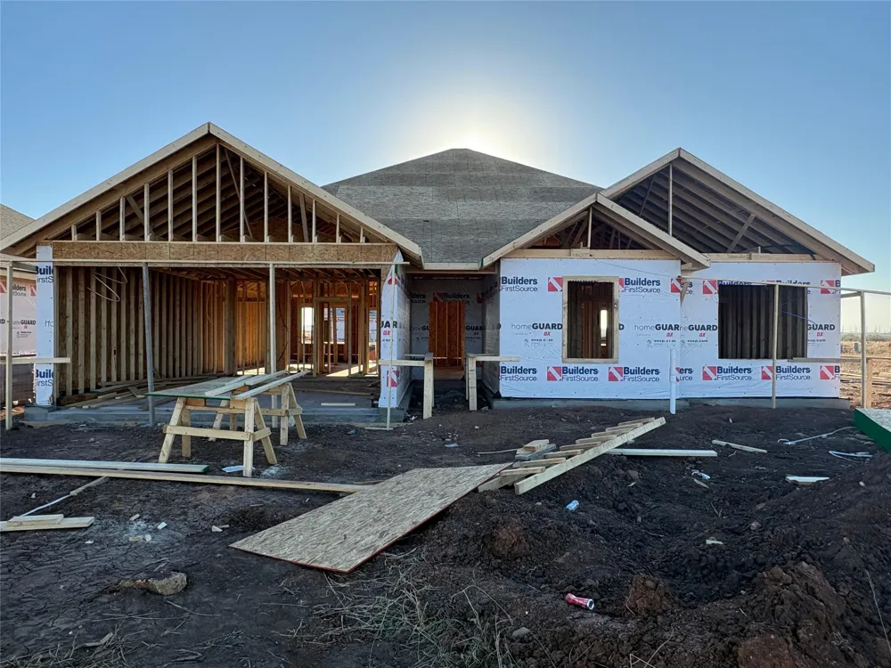 Agent Owner. Discover this beautiful new-build located in the highly sought-after Carriage Hills neighborhood within the Wylie East School District. This home features 3 bedrooms, 2 bathrooms, and a bright open floor plan designed for modern living. The kitchen is equipped with white cabinetry, stainless steel appliances, including a beverage fridge, granite or quartz countertops, and a large island, perfect for hosting and meal prep. A spacious, separate dining room provides ample space for gatherings. The living room will feature a custom built-in fireplace, creating a cozy and inviting atmosphere. The primary suite offers boxed ceilings, double sinks with granite or quartz countertops, a relaxing soaking tub, a large separate shower, and an impressive walk-in closet with abundant built-ins. The secondary bedrooms are generously sized with ample closet space. An additional built-in desk area and multiple storage options add extra convenience. Enjoy outdoor living on the covered patio, overlooking a large backyard. The front and backyard will include sprinkler systems, sod, and a wood privacy fence. This exceptional home is ready for its first owner! The builder is also offering the buyer the opportunity to customize select finishes—such as backsplash, flooring color, wall paint, and shower floor tile—pending construction progress.