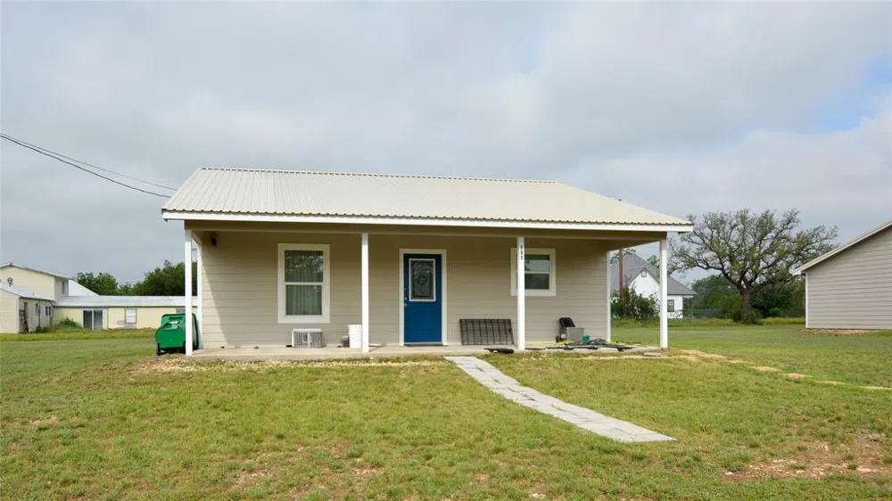 Beautiful home which was a new build in 2021. Exterior has metal roof and hardi plank siding along with an amazing front porch. Interior is open concept with kitchen featuring granite counter tops, stainless appliances and walk in pantry. Bath has single sink vanity with tiled tub & shower combo. Bedrooms are located on each side of a short hallway and each have great closet space. Laundry room is conveniently located at the end of the hall. New survey will be provided by Seller. All utilities provided by City of Goldthwaite. Call today and schedule a time to take a look!