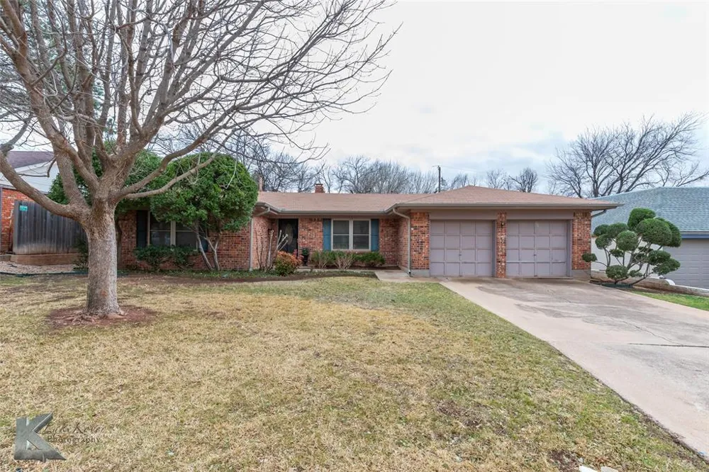 Welcome to this beautifully maintained home in a friendly, established neighborhood near Abilene Christian University! With its inviting curb appeal, mature shade trees, and spacious layout, this home is perfect for growing families. Step inside to find fresh paint and updated flooring throughout. The living room features a stunning cathedral ceiling, built-in shelving, and a cozy painted brick fireplace—perfect for family movie nights or playtime. The open kitchen boasts granite countertops, a stylish backsplash, and ample storage, making mealtime a breeze. A charming bay window in the dining area provides a sunny spot for family breakfasts while overlooking the spacious backyard. Kids will love the enclosed back porch—ideal as a game room or a fun hangout space! The backyard offers plenty of room for play and adventure, with a dedicated dog run, a brick patio for outdoor gatherings, a storage shed, and space for gardening. The home also features generously sized bedrooms with large closets, a well-equipped laundry room with built-in shelves, a sink, and extra storage, and a thoughtfully designed layout that provides both comfort and convenience. Located just minutes from schools, parks, and shopping, this home is a must-see for families looking for space, comfort, and a welcoming community!